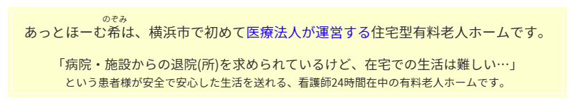 A. 介護を必要とされる高齢者の方が、外部のサービスを利用して生活する施設です。