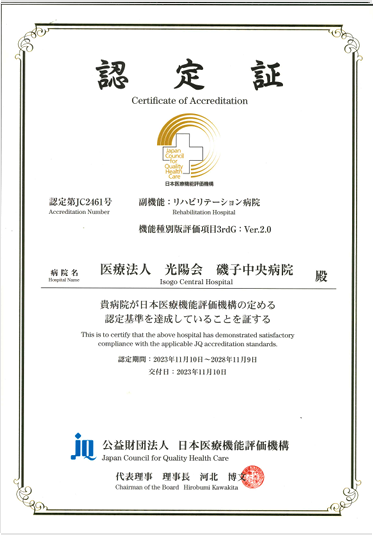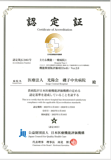 HOME > 病院機能評価について 病院機能評価について 2023年11月10日付で、病院機能評価(3rdG:Ver2.0)の認定を受けました。 これからも磯子区の医療を担えるよう、職員一同、より一層邁進してまいります。